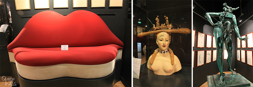 A exposição permanente conta com diversas obras do artista surrealista Salvador Dalí, incluindo quadros, desenhos, colagens, esculturas e objetos como o famoso Sofá-lábios. A lojinha de souvenir é uma das mais tentadoras.