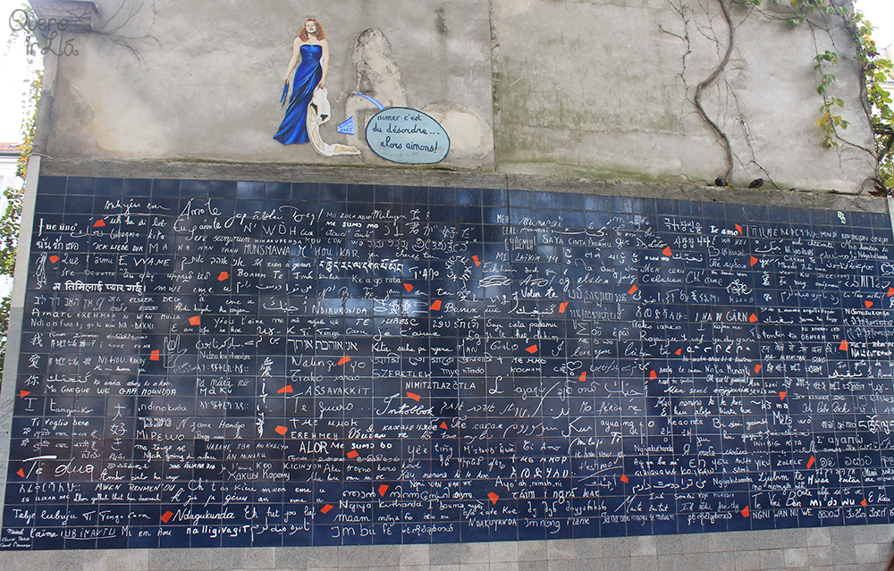 Pertinho da estação de metrô Abesses (que inclusive tem uma linda entrada!) fica o Mur des Je t’aime, um enorme painel de azulejos azuis criado por Frèdèric Baron em parceria com a caligrafista Claire Kito, onde a frase “Eu te amo” aparece mais de 300 vezes escrita em diversos idiomas e dialetos.
