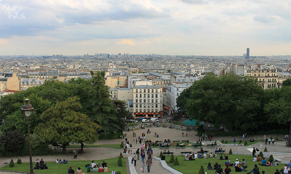 Ao chegar lá em cima, a vista é maravilhosa! Tem um painel apontando tudo que é possível enxergar (obs. Desse ponto não dá pra ver a Torre Eiffel, mas há um pequeno caminho na lateral da basílica onde você pode vê-la por entre as grades. No pôr-do-sol fica uma imagem linda).
