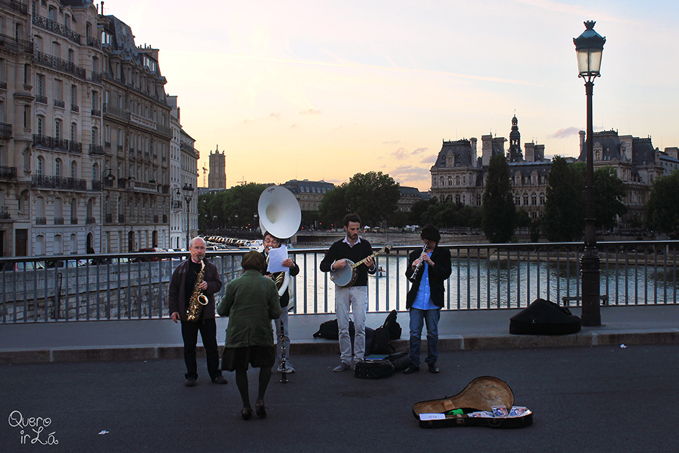 Toda cidade grande tem seus músicos de rua e em Paris não é diferente, por conta do alto número de visitantes. Eles ocupam praticamente todas as regiões turísticas, além das estações de metrô e os próprios vagões. Claro que nem todos têm autorização para isso. A empresa responsável pelos trens realiza um concurso onde apenas os melhores, segundo um júri, ganham a autorização para tocar nos corredores do metrô (às vezes, duvido um pouco desse júri, mas no geral os músicos são bons mesmo). Ouvimos de tudo por lá, peruanos com sua tradicional flauta, bandas, cantores líricos, música africana e, claro, música francesa… ah, como os parisienses odeiam ouvir La vie en rose tocado no acordeon milhares de vezes ao dia.