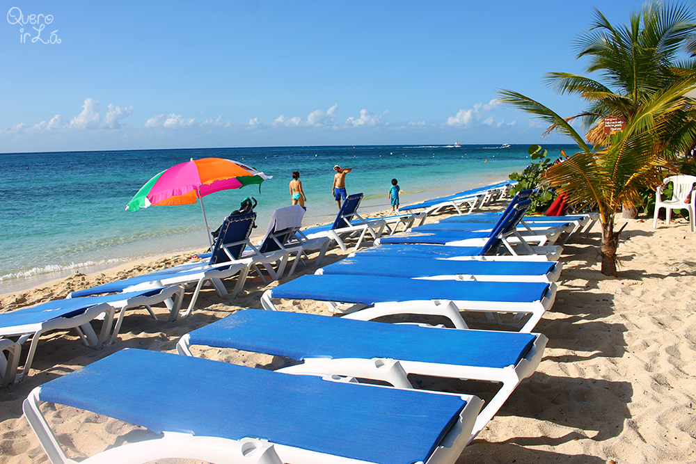 Voltando a terra firme resolvi perguntar ao guia se era possível de lá ir para alguma praia ao invés de voltar ao navio, já que ainda tínhamos algumas horinhas. Ele nos indicou um taxi e por sorte um casal com um filho pequeno me ouviu e quis dividir a corrida. O motorista nos perguntou para que praia queríamos ir, eu respondi “a mais bonita!” enquanto o casal queria uma que fosse ideal para crianças. Ele nos levou à Mister Sancho’s, que era uma mistura das duas.